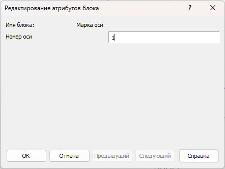 Сразу после создания блока появится окошко, где надо ввести номер оси – «1». Нажмите ОК.
