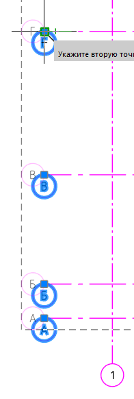 Выделите выносную линию на оси Б.